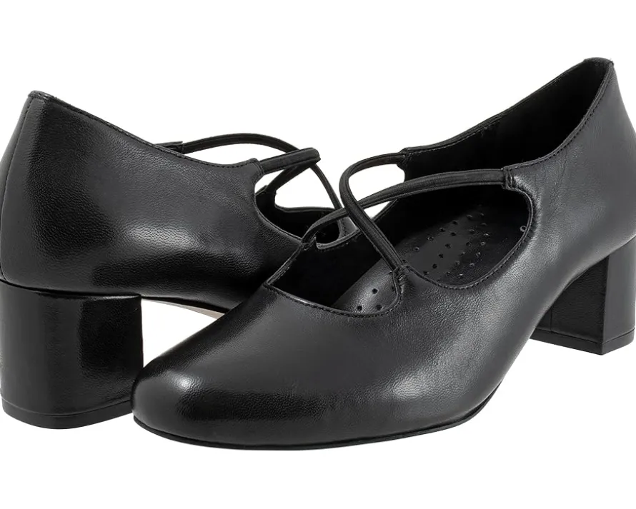 - Exclusively brighten up your night look wearing the Trotters® Demi. This pair of heels is designed with a crossover strap, block heel, and brand name embossed on the footbed. It also has a soft man-made nappa upper and a cushioned footbed with arch support.