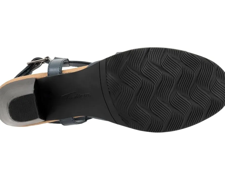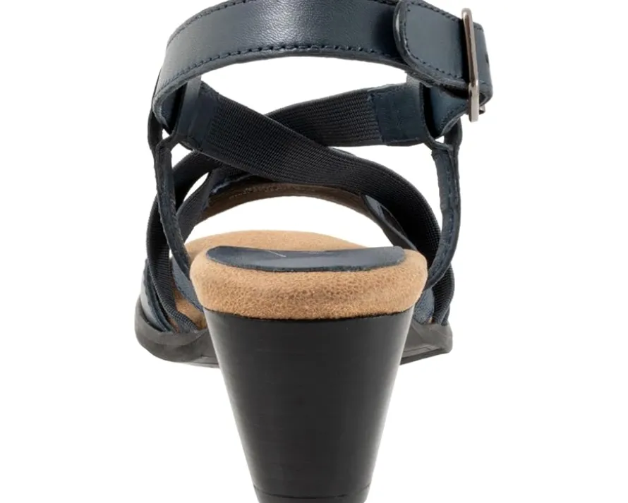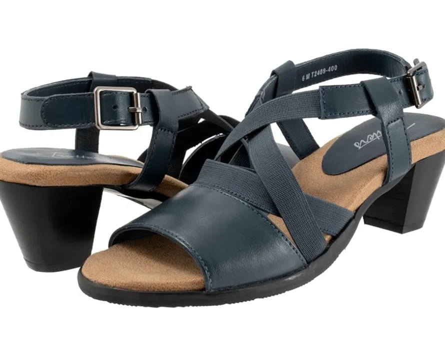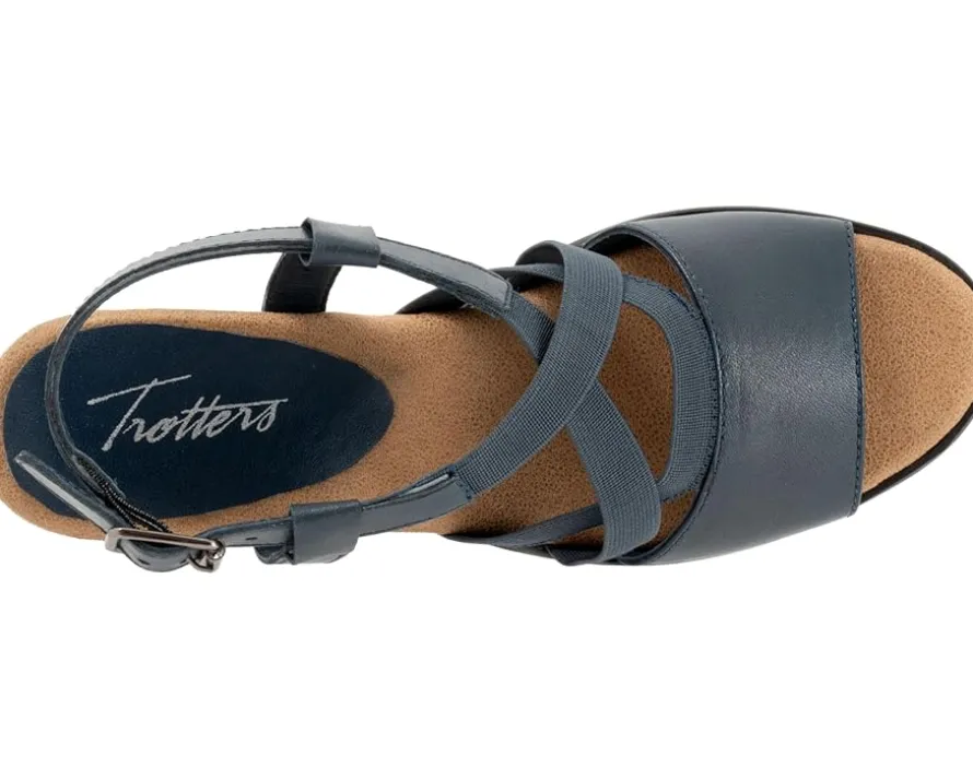 - Let your feet flourish in joy and wonder wearing the lightweight Trotters® Meadow Flat Sandals. The almond toe pair features soft leather upper construction with cross stretch straps, elastic v-gore, and buckle adjustable slingback strap closure.
