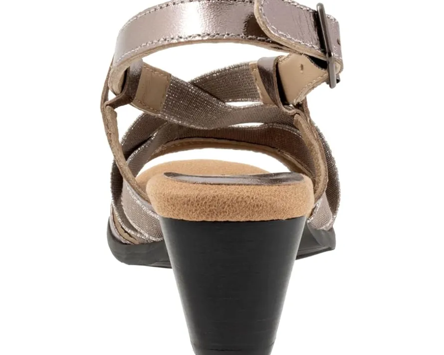 - Let your feet flourish in joy and wonder wearing the lightweight Trotters® Meadow Flat Sandals. The almond toe pair features soft leather upper construction with cross stretch straps, elastic v-gore, and buckle adjustable slingback strap closure.