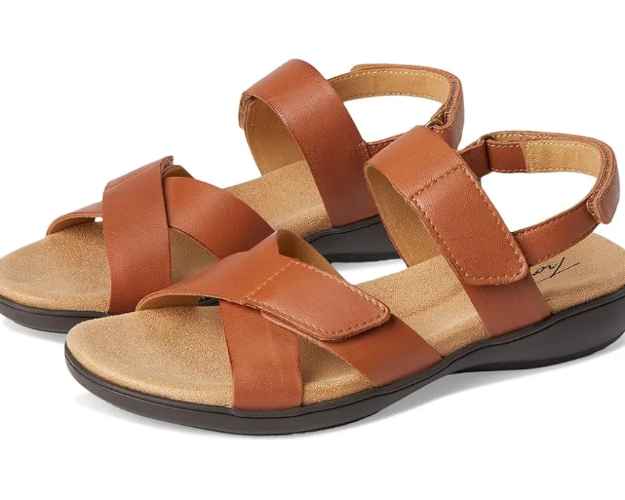 - Designed with criss-cross straps and an adjustable ankle strap with hook-and-loop closure, the Trotters® River sandals are the perfect choice to pair with your casual looks and outfits. The leather upper, memory foam with molded EVA footbed, and leather lining offer a comfortable walking experience. Lightweight and breathable, these leather flats are easy to slip on and off. Get ready for a comfortable day out wearing these flat sandals.