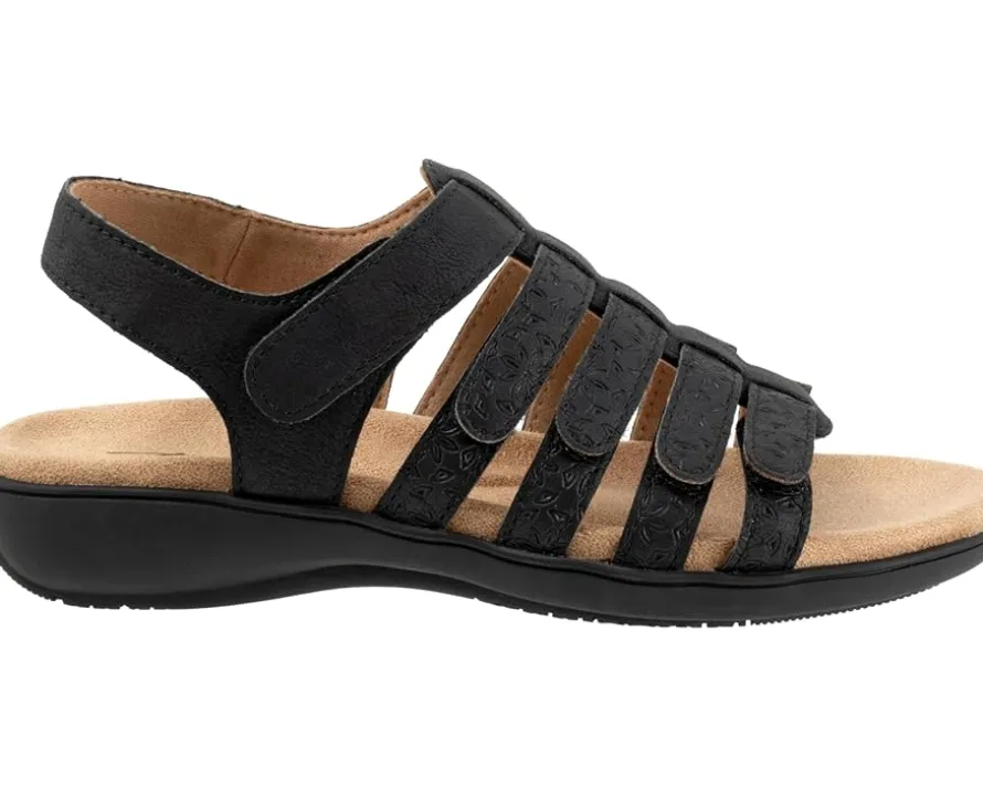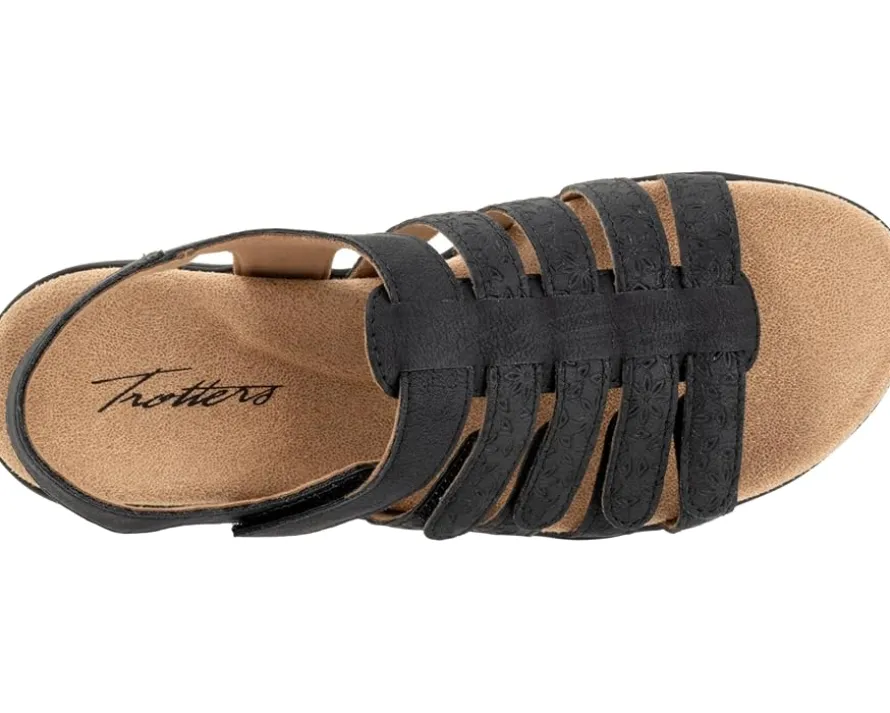- Lightweight, Trotters® Tiki Tool will surely fit your style and comfort requirements. These open round toe design flats feature brand detailing on the footbed, adjustable hook-and-loop closure, and soft leather upper. The sandal has breathable leather lining.