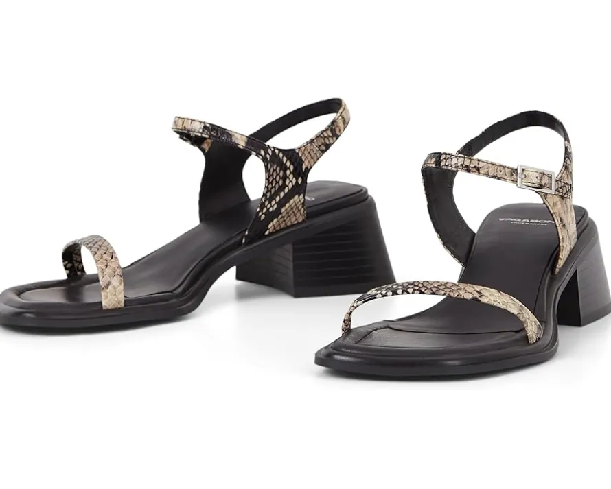 - Bring a touch of fashion-forward wilderness to your style wearing the Vagabond Shoemakers® Ines Snake Sandals The footwear features snake print leather upper straps with flared block heels and open square toe silhouette.