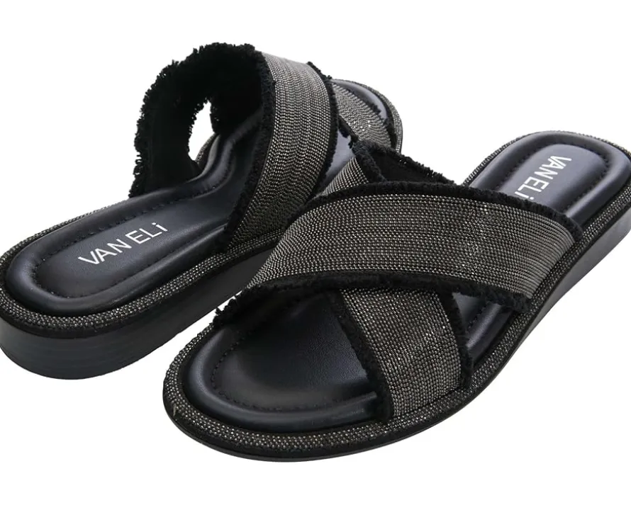 - The Vaneli® Bogie Sandals are crafted with premium soft and breathable materials for extreme all day comfort and support. The slip-on style sandals come with a canvas upper with cross strap detailing, synthetic lining, and cushioned leather insole.