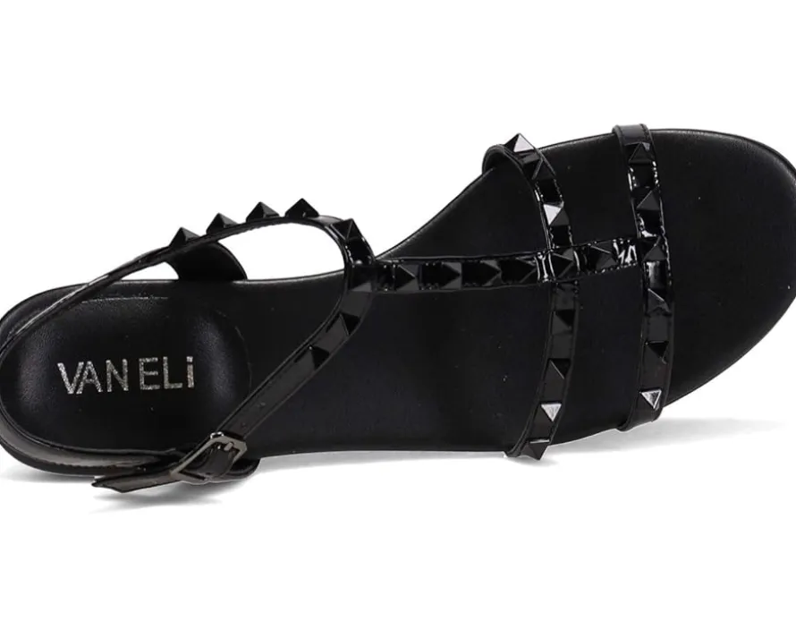 - The Vaneli® Brunel has sophisticated studs. These strappy leather sandals with color-coordinated pyramid studs have an ankle buckle with hidden elastic insert for stretch and comfort.