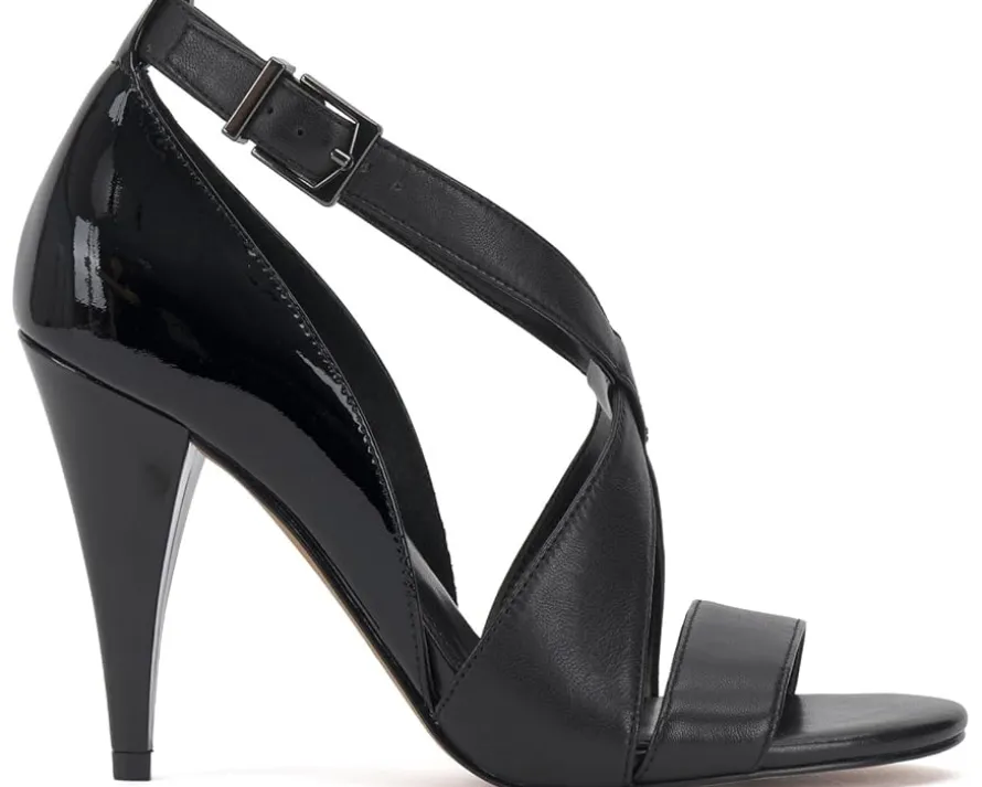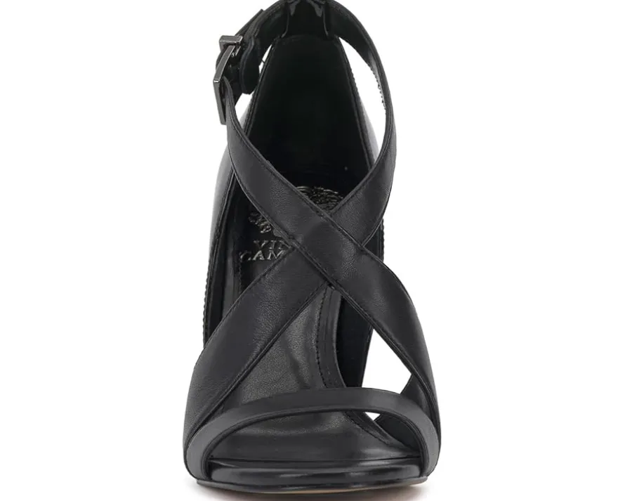 - Experience top-notch solace and look classy wearing Vince Camuto® Aleanna heels. It is designed with crossover vamp straps, stiletto heels, and an open round toe design. The adjustable ankle strap buckle offers you a custom fit.