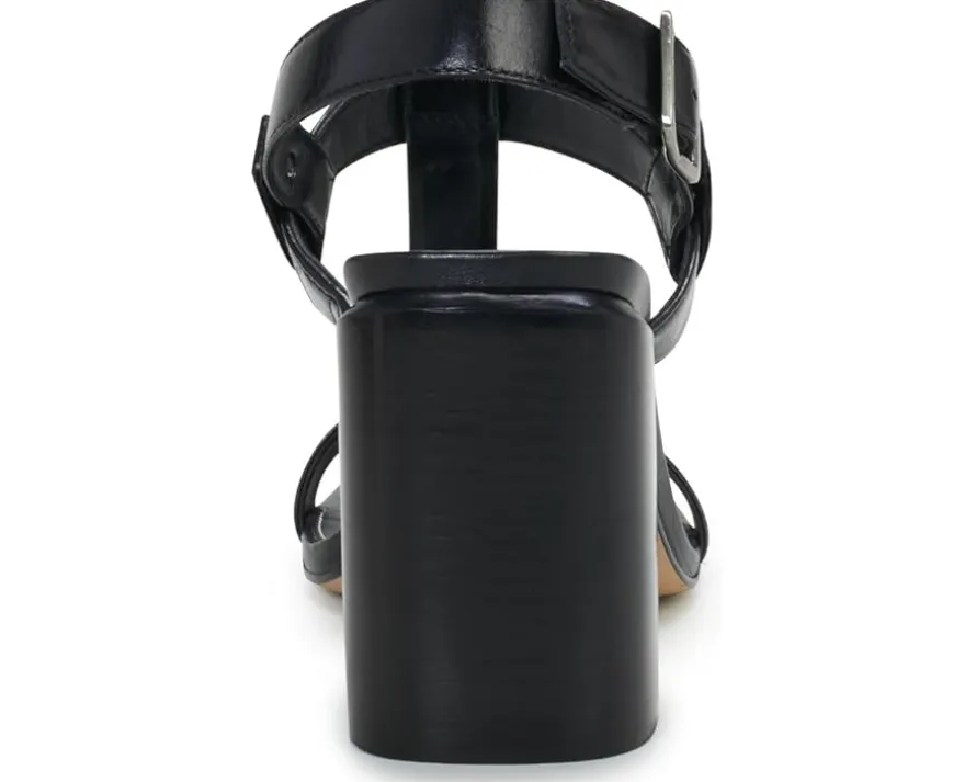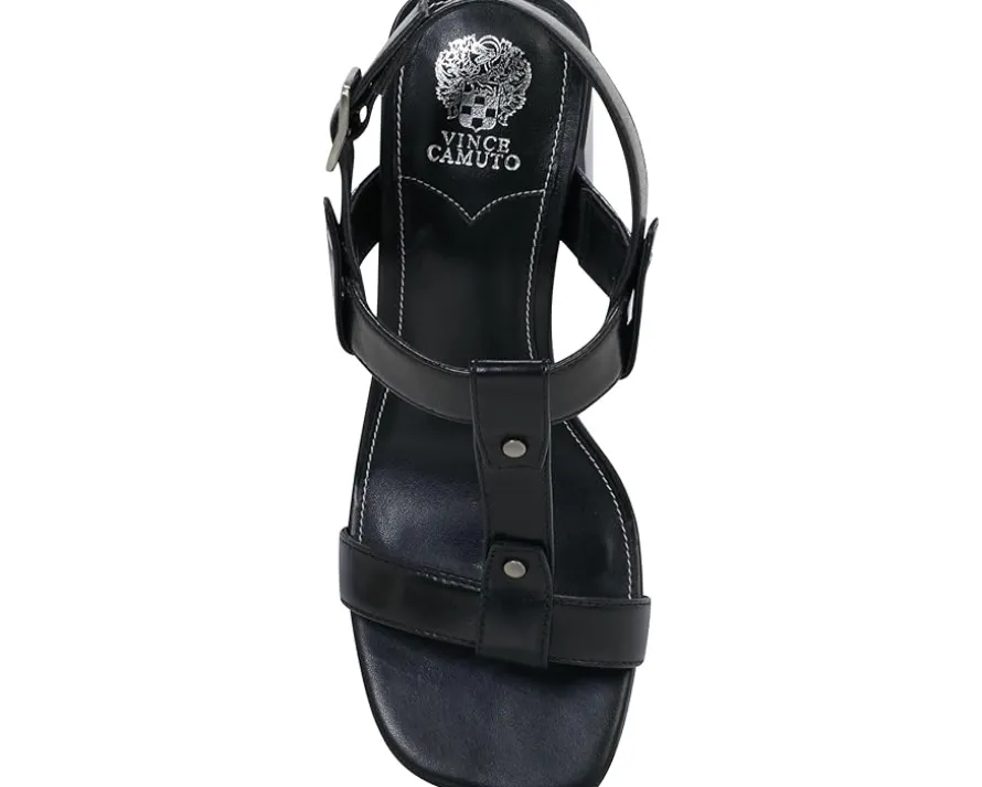 - Walk the urban runway with confidence by styling the Vince Camuto® Clarissa−a sandal that’s more than a step ahead. Its T-strap design, adjustable sling strap, and buckle closure offer a customized fit. Embrace comfort with an open, square toe and padded footbed atop a sculpted block heel. Add a touch of edge with minimal stud hardware, turning every step into a statement.