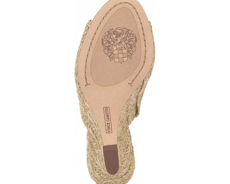 - Effortlessly elevate your summer wardrobe with the Vince Camuto® Vilty sandals, where comfort meets sleek sophistication. Designed with a sculpted wedge heel and a rounded open toe, these sandals offer a perfect blend of elegance and ease. The inside elastic gore not only ensures a secure fit but also enhances overall comfort.