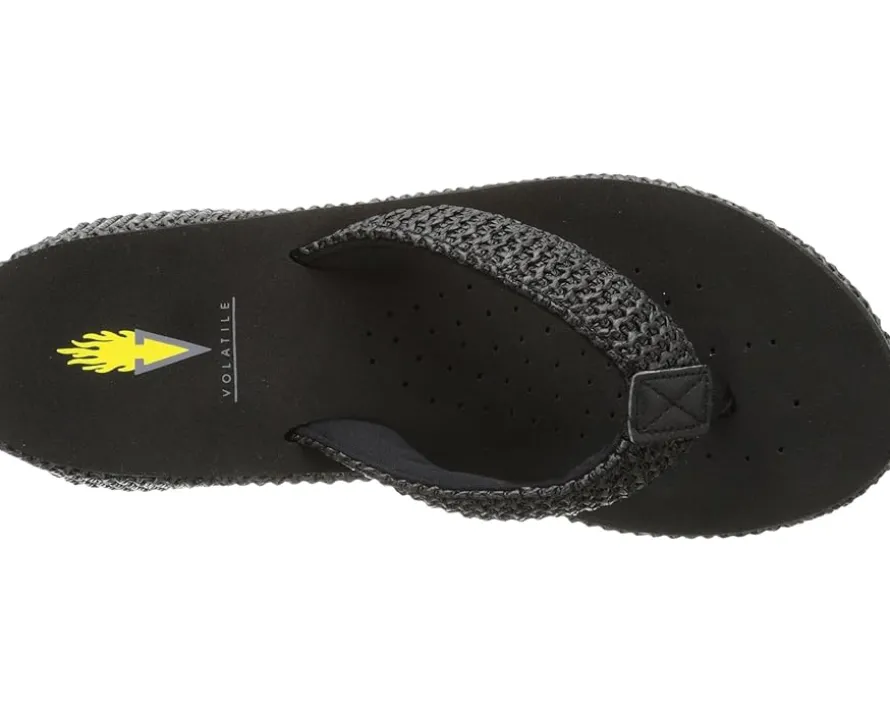 - There’s no such thing as island fever when you’re having so much fun in the sun! Enjoy the lazy days of summer when you rock these vivacious textile VOLATILE™ sandals with breathable man-made lining and lightly cushioned, stationed insole!