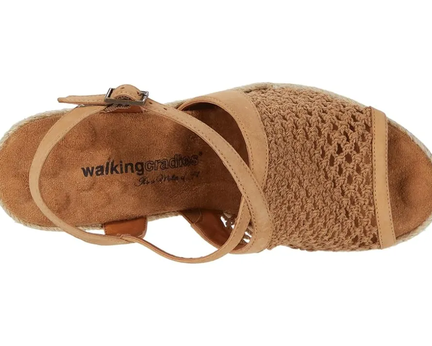 - A leather and woven upper will definitely cue the compliments when you step out in the Walking Cradles® Kendra open-toed wedge sandal.