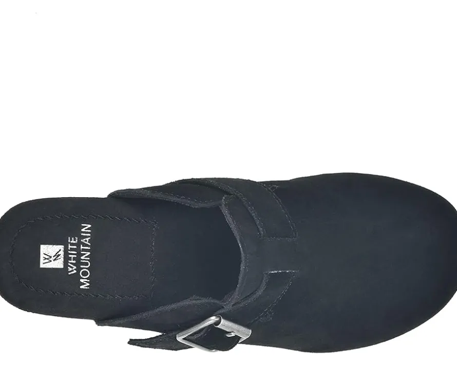 - The cozy and stylish White Mountain® Behold clog is equipped with an open back and belted buckle hardware strap. The contoured, comfort footbed and block heel give you all the support you need. This clog stands apart thanks to its wear-all-day comfort features.