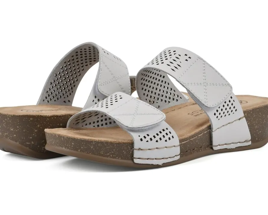 - Make a statement in your spectacular fashion tempo wearing the White Mountain® Ferula Sandals. The slip-on footwear features breathable leather upper straps with perforated design and low wedge heels.