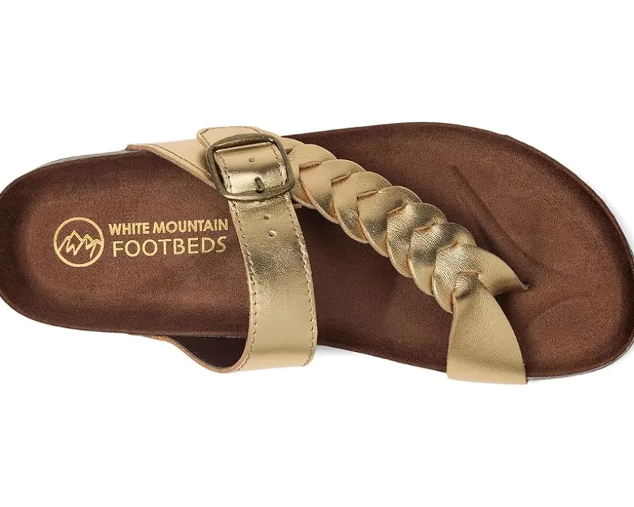 - Introducing White Mountain® Happier, where comfort meets style in a blissful fusion. Crafted with a supple leather upper and cozy faux suede lining, it boasts a contoured footbed for unparalleled support. The adjustable buckle and woven strap design ensure a customizable fit, while the faux leather outsole and insole offer durability and lasting comfort.