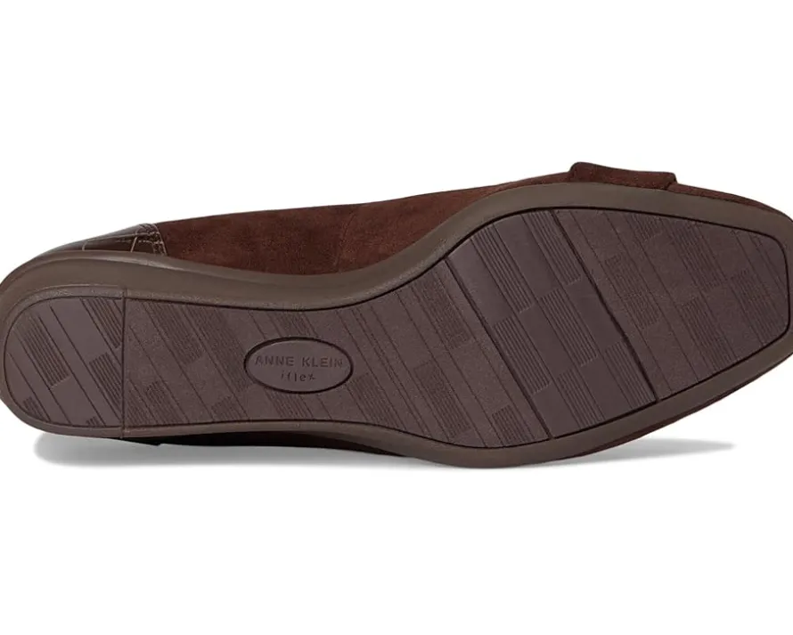 - The Anne Klein® Wyatt is a refined staple that features a squared toe and a suede upper, elevated by a patent-texture heel counter. The padded polyurethane insole ensures all-day wearability, while the rubber traction outsole provides stability with every step. Set on a sleek wedge heel, this versatile pump transitions effortlessly from office to evening.