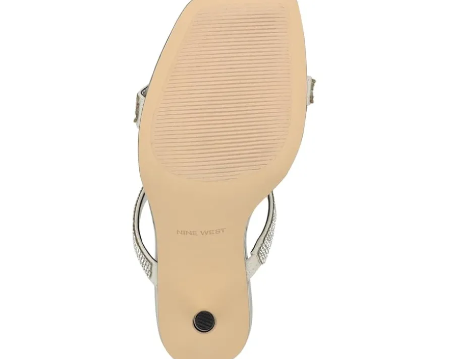 - Keep your style game sassy with Nine West® Yogi slip-on sandals that are perfected to empower women to take on the world in style, from day to night. These comfortable sandals are featured in faux suede upper with polyurethane lining and a rubber insole. With a modern square toe design and embellished double straps, they make a gorgeous wardrobe staple.
