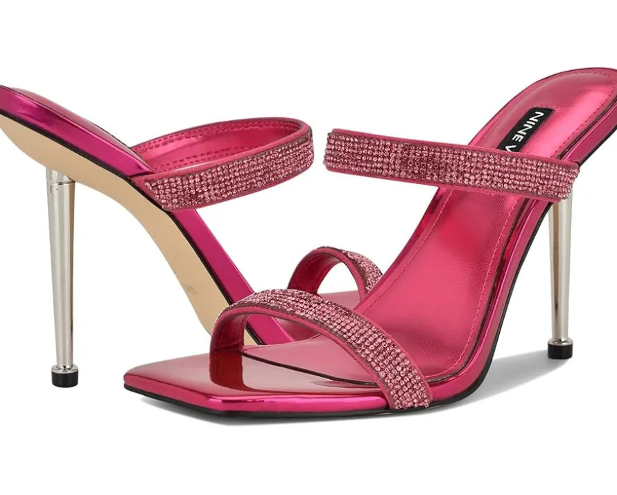 - Keep your style game sassy with Nine West® Yogi slip-on sandals that are perfected to empower women to take on the world in style, from day to night. These comfortable sandals are featured in faux suede upper with polyurethane lining and a rubber insole. With a modern square toe design and embellished double straps, they make a gorgeous wardrobe staple.