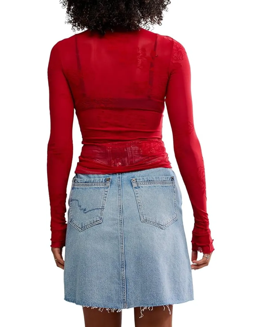 - Add a touch of romance to your wardrobe choosing the Free People™ You Decide Long Sleeve Top. Crafted in a textured, sheer mesh fabrication, this pull-on style top is edgy and perfect for layering. It features a mock neckline, fitted long sleeves, and a straight hem. The fitted top can be styled over anything from a tank to a barely-there bralette.