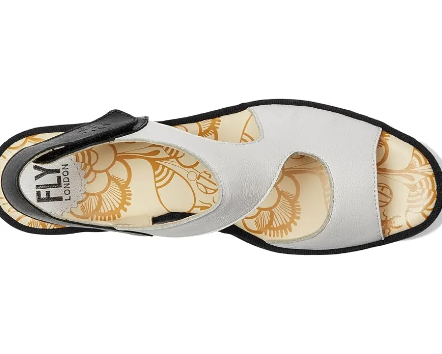 - A hook-and-loop ankle strap makes the FLY LONDON® YOXA576FLY easy to get on and off. The cut out design gives it a cool and unique look. Comfortable enough to wear all day, the heel-to-toe cushion insole, rounded toe shape with leather uppers and linings cradle your feet.