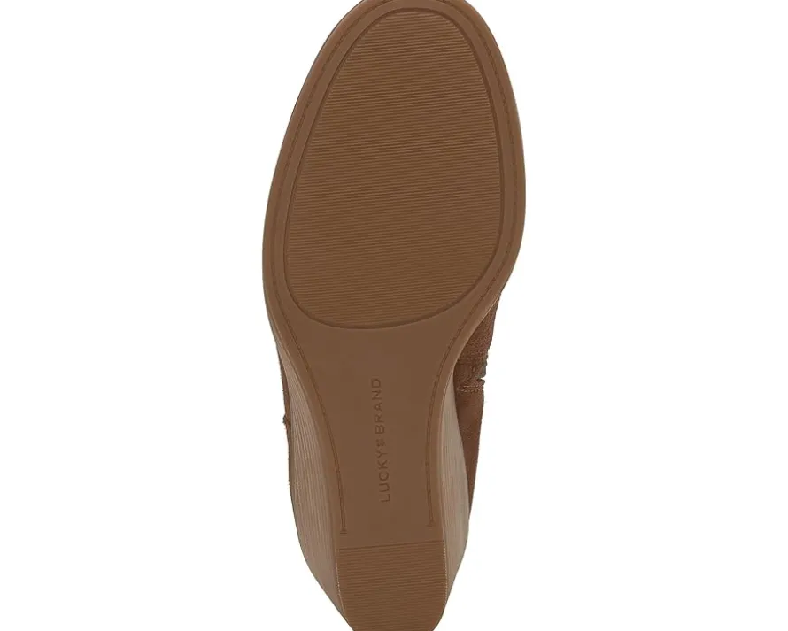 - Beat the heat of the journey by wearing this breathable and soft Lucky Brand® Zorla bootie. The bootie features a rounded toe and pull-on style. The side zip closure makes it perfectly sit on the feet. It has Wedge heel.