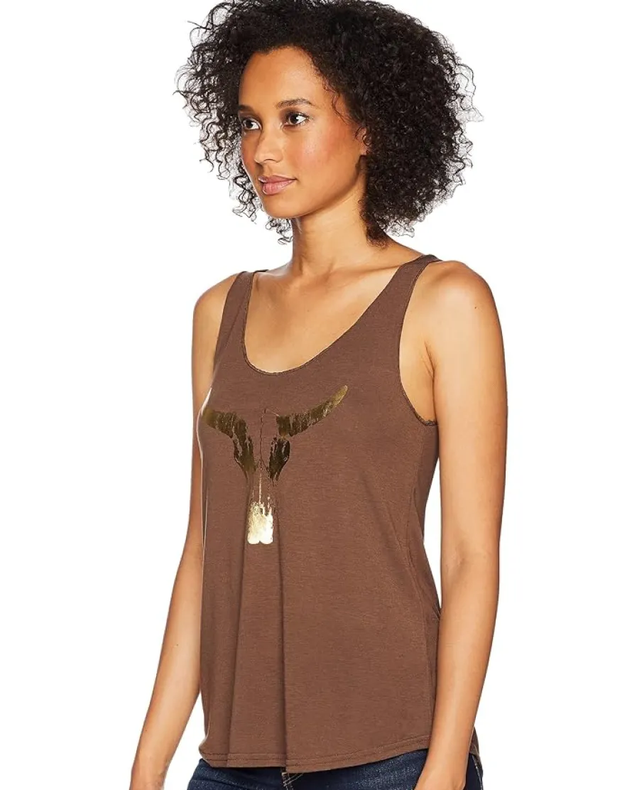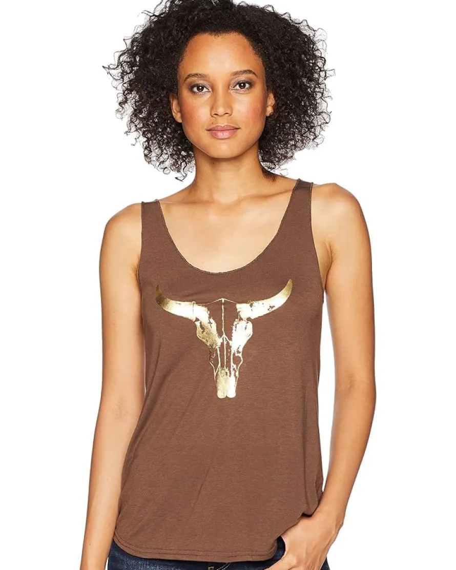 - Take life it’s beautiful golden horns in the Roper® 1771 Polyester Rayon Tank Top.