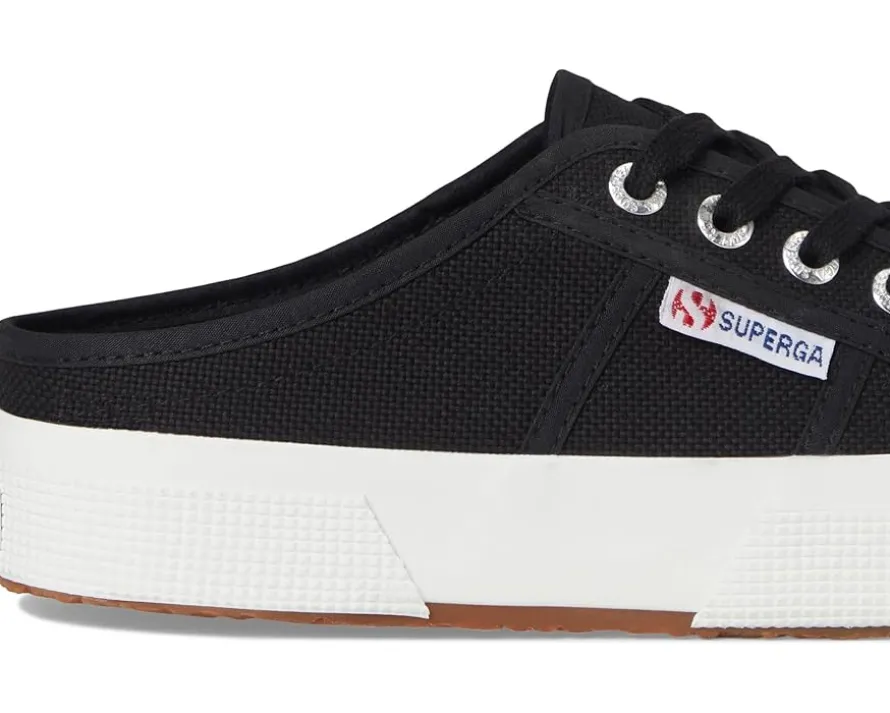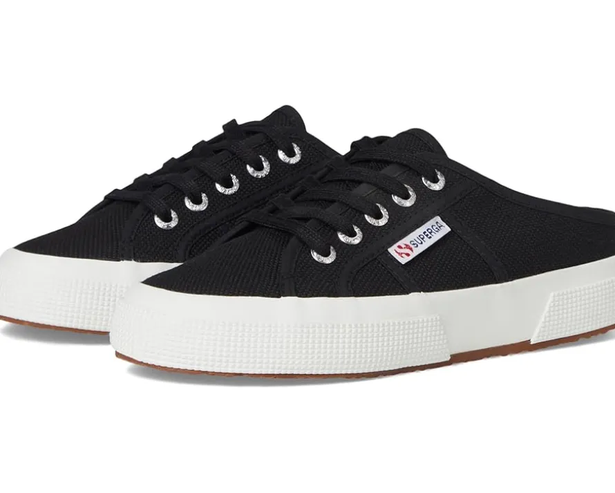 - The Superga® 2402 Mules are the perfect blend of style and comfort. Made with premium canvas upper and soft cotton lining, these mules will keep your feet feeling happy all day. The padded insole adds extra support, while the cutaway back gives them a trendy touch. Complete with the iconic Superga tab on the side and heel, as well as embossed eyelets, these mules are a must-have for your shoe collection. Finished with a vulcanized gum sole, they offer both durability and style.