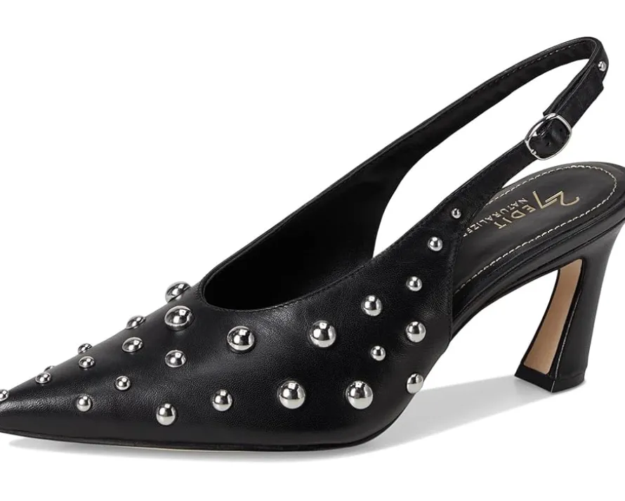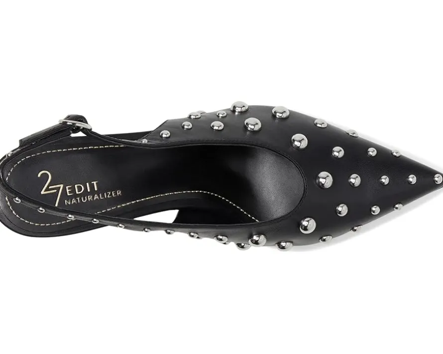 - Walk into elegance and comfort wearing the Naturalizer® 27 Edit Elaine-where style meets sustainability. Crafted from premium, responsibly sourced leather, these sleek heels feature a sophisticated slingback strap and U-shaped topline for timeless appeal. The pointed toe adds a chic finish, while REZORB responsive cushioning and Contour+ Comfort technology ensure sneaker-level support with every step. Designed with a smooth lining and insole for breathability, plus a rubber outsole for durable wear, these heels are perfect for all-day wear.