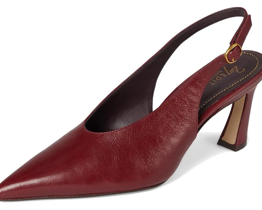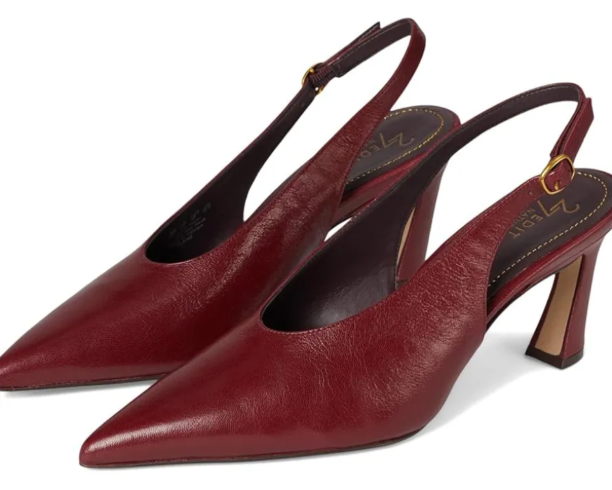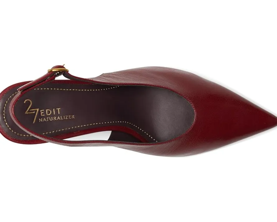 - Walk into elegance and comfort wearing the Naturalizer® 27 Edit Elaine-where style meets sustainability. Crafted from premium, responsibly sourced leather, these sleek heels feature a sophisticated slingback strap and U-shaped topline for timeless appeal. The pointed toe adds a chic finish, while REZORB responsive cushioning and Contour+ Comfort technology ensure sneaker-level support with every step. Designed with a smooth lining and insole for breathability, plus a rubber outsole for durable wear, these heels are perfect for all-day wear.