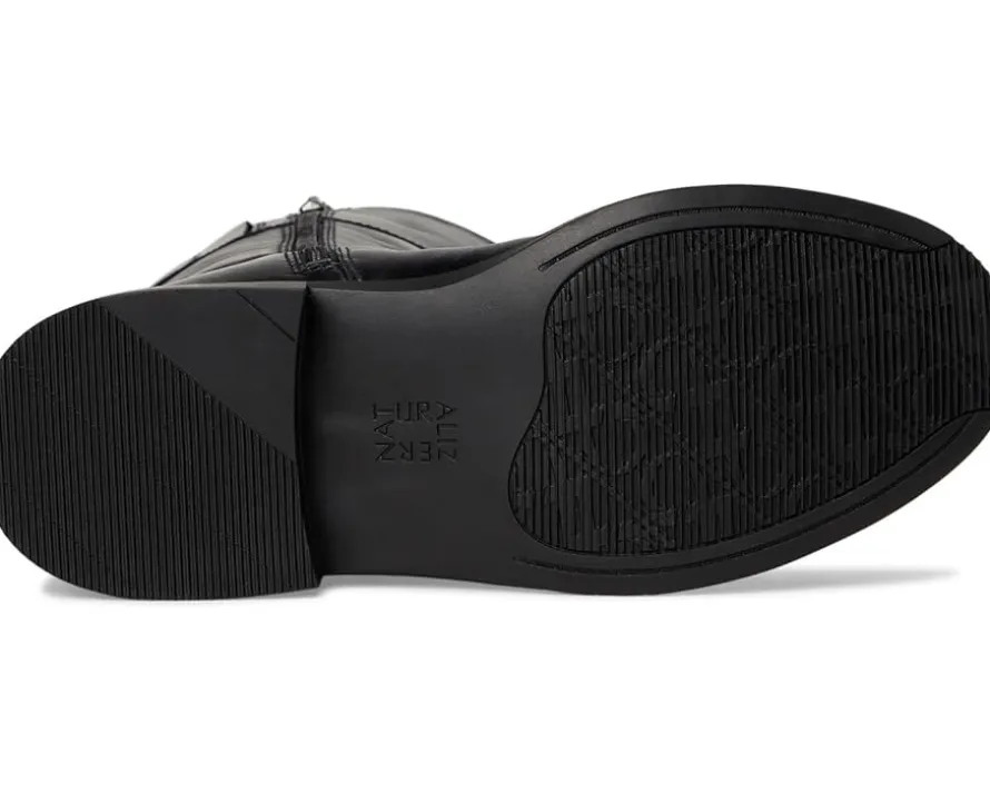 - Equestrian chic meets perfect fit in the Naturalizer® 27 Edit Oslo Narrow Calf Riding Boots. These sleek, knee-high boots capture timeless equestrian style, specifically designed with a narrow calf for a flawless fit. The premium leather upper features a round toe and a chic decorative buckle accent. Experience true, all-day comfort thanks to the Contour+ Comfort technology, a cushioning foam insole, and a smooth PU lining. A zippered side closure and hidden goring ensure easy wear and extra flexibility. The proprietary synthetic rubber outsole delivers shock absorption and enhanced flexibility.