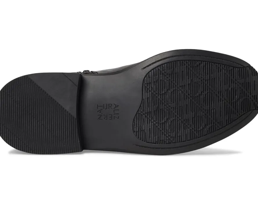 - The Naturalizer® 27 Edit Oslo Riding Boots are sleek knee-high boots that deliver equestrian style with classic comfort. These tall riding boots are made of a premium leather upper with a smooth finish, a round toe silhouette, and a decorative buckle accent. Their zippered side closure and hidden goring panel offer extra flexibility. These heeled boots are made of a foam insole and polyurethane lining for natural comfort and breathability. Their signature Contour+ Comfort technology provides a premium fit and true, all-day comfort experience. The lining and insole of these boots are crafted from partially recycled materials. These leather boots feature extra cushioning for an added layer of unrivaled comfort.