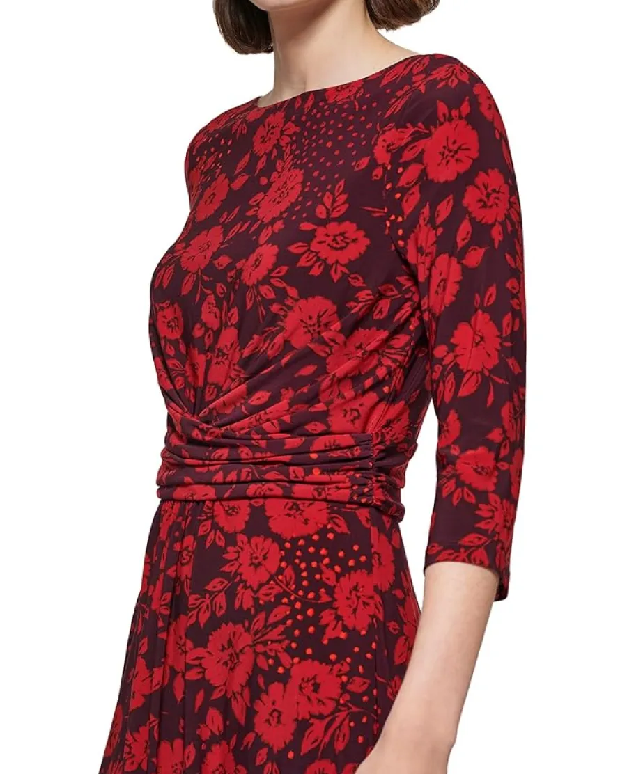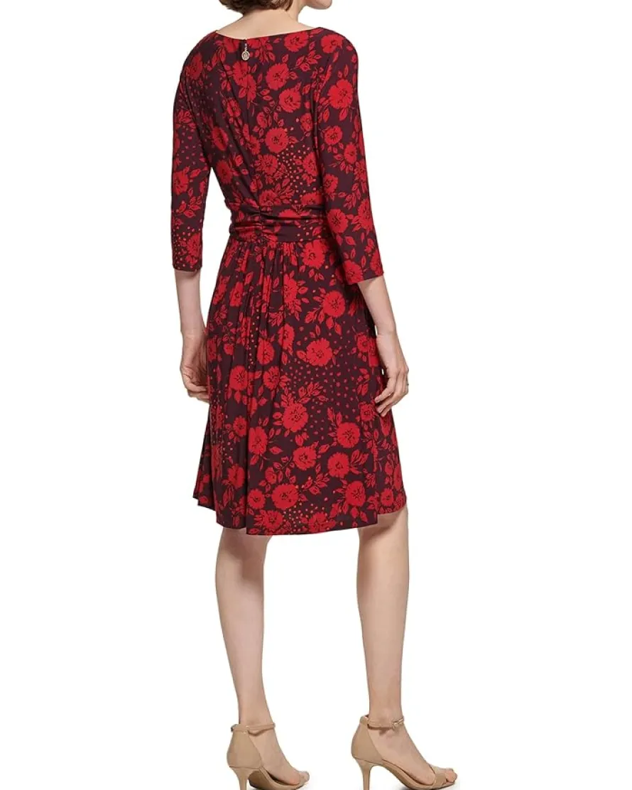 - Flaunt a stylish and cheerful look wearing the Tommy Hilfiger® 3/4 Sleeve Jersey Ruched Fit-and-Flare dress.