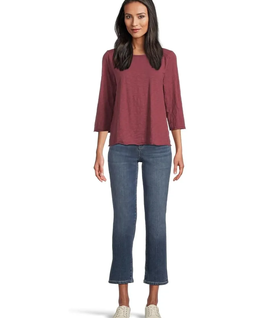 - The Mod-o-doc™ 3/4 Sleeve Waffle Mix Media Open Crew Neck Tee is crafted from cotton fabric, offering a perfect blend of comfort and style. This casual tee is designed with elbow-length sleeves, a crew neckline, and a straight hem. Pair this crew-neck tee with denim pants or chic trousers for an effortless casual look.