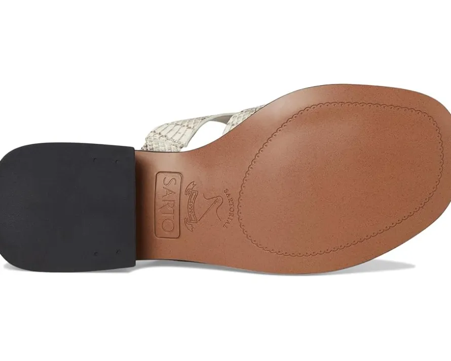 - The eye-catching strap design and toe loop detail of the Franco Sarto® A-Saylor sandals make for a truly exquisite slide. These heeled sandals are designed with a foam insole and polyurethane lining. The leather upper is styled with a slip-on design for easy wear.