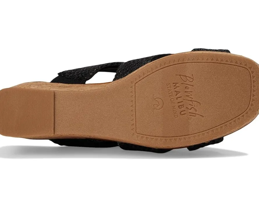 - Elevate your resort style choosing the Abi Wedge Sandal from Blowfish® Malibu. It features a woven faux-leather upper with crisscross straps and a platform wedge heel for a little extra height. The sandals have polyurethane lining, foam insole, and synthetic rubber outsole.