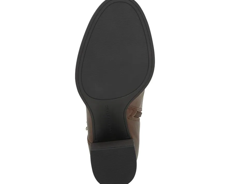 - End your hunt for an authentic pair of boots that are fashionable and equally comfortable with the Lucky Brand® Achelle Boots. The boots have a versatile design and are made with a leather upper, a textile lining, and a padded synthetic footbed. The decorative buckled ankle strap enhances the style of these boots while the zippered side closure offers you an easy entry.