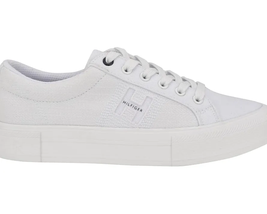- A great addition to your shoe closet, the Tommy Hilfiger® Aconia sneaker has embossed branding detail along the lateral side for a leveled up look. With lace-up closure, the rounded toe pair has canvas upper construction and polyester lining for additional comfort.