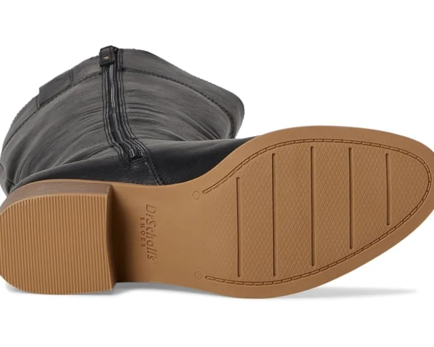- The Dr. Scholl’s® Adeline Zip Tall Boots feature a faux leather or microfiber upper, fabric linings and topcloth, partially made from recycled materials. Designed with a zippered side closure for a secure fit, the knee-high boots boast a freshness-enhancing insole with odor-control properties that delivers cushioning and support throughout the day.