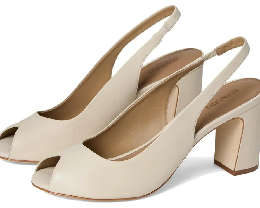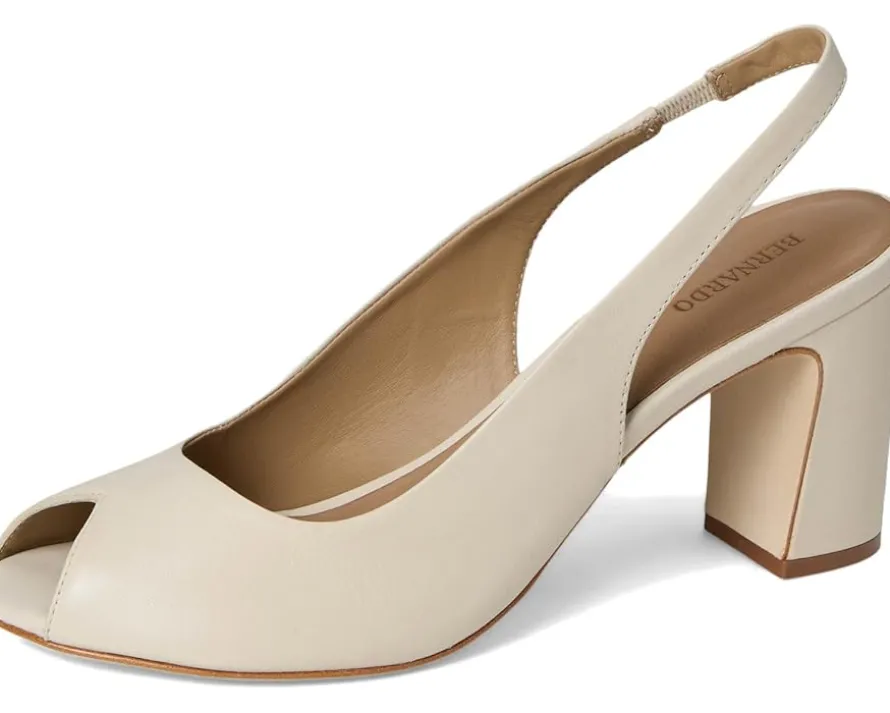 - Crafted for the city beat: Bernardo® Adell. From meetings to soirées, these slingback peep-toe heels are your go-to for everyday elegance. Crafted with a luxe leather upper, lining, insole, and outsole, Adell delivers all-day comfort without compromising on polish. The soft patent leather or supple suede adds a touch of texture, while the easy pull-on design and secure slingback strap keep things effortlessly refined. A modest block heel elevates your stride, perfect for power moves at the office and graceful glides at dinner.
