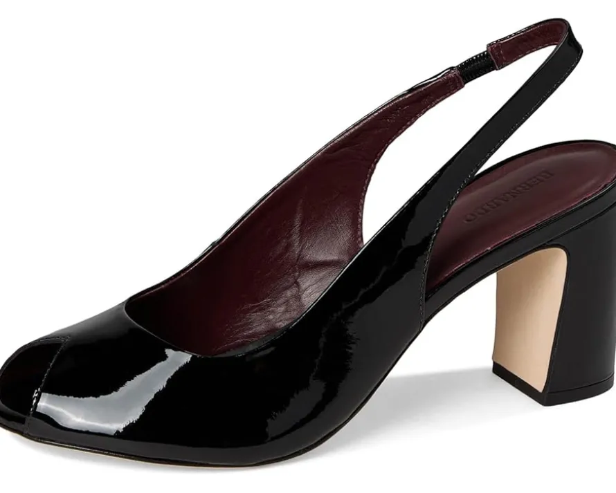 - Crafted for the city beat: Bernardo® Adell. From meetings to soirées, these slingback peep-toe heels are your go-to for everyday elegance. Crafted with a luxe leather upper, lining, insole, and outsole, Adell delivers all-day comfort without compromising on polish. The soft patent leather or supple suede adds a touch of texture, while the easy pull-on design and secure slingback strap keep things effortlessly refined. A modest block heel elevates your stride, perfect for power moves at the office and graceful glides at dinner.