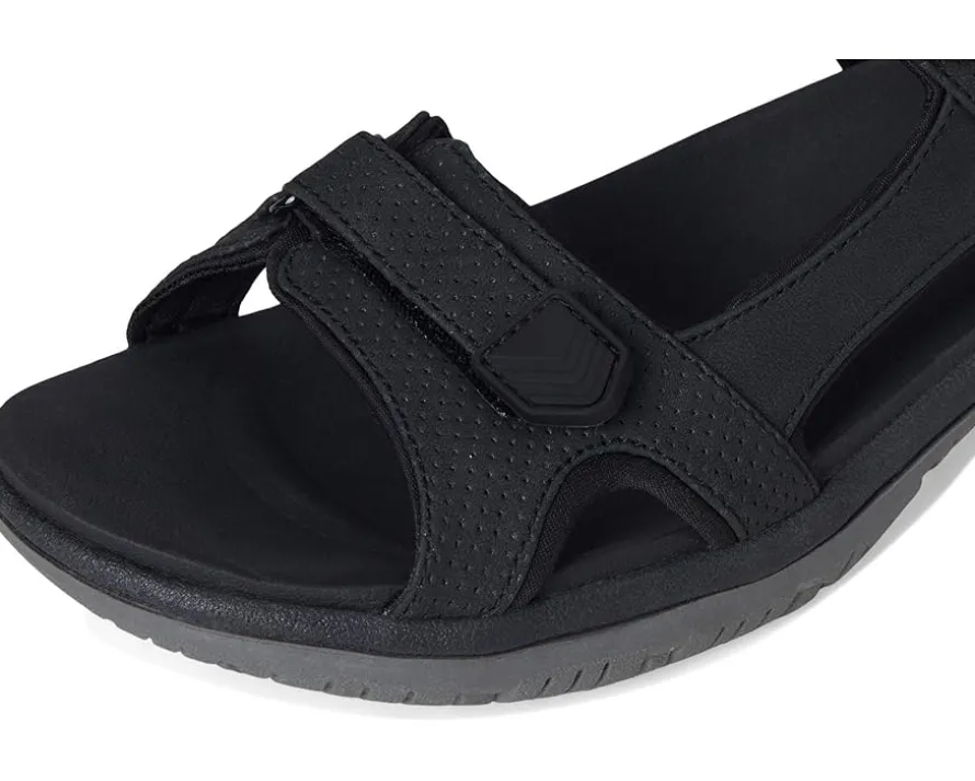- The Dr. Scholl’s® Adelyn sandals are strappy sandals with stitch detailing, extra heel cushion, and a synthetic rubber outsole. These sporty sandals are made of a low-chemical faux leather and Spenco fabric upper that is partially made from recycled plastic bottles. The straps with hook-and-loop closure and stretch gore ensure easy on/off. Their lightweight, flexible construction with flex grooves moves with you. These flat sandals are designed with a polyurethane lining that is partially made from recycled plastic bottles while the foam insole features Insole technology with anatomical cushioning, comfort, & arch support. As beach shoes, travel shoes, or walking shoes, you will love sporting these sandals everywhere.