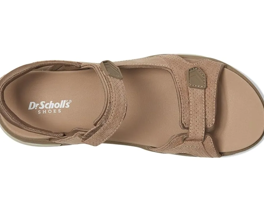- The Dr. Scholl’s® Adelyn sandals are strappy sandals with stitch detailing, extra heel cushion, and a synthetic rubber outsole. These sporty sandals are made of a low-chemical faux leather and Spenco fabric upper that is partially made from recycled plastic bottles. The straps with hook-and-loop closure and stretch gore ensure easy on/off. Their lightweight, flexible construction with flex grooves moves with you. These flat sandals are designed with a polyurethane lining that is partially made from recycled plastic bottles while the foam insole features Insole technology with anatomical cushioning, comfort, & arch support. As beach shoes, travel shoes, or walking shoes, you will love sporting these sandals everywhere.