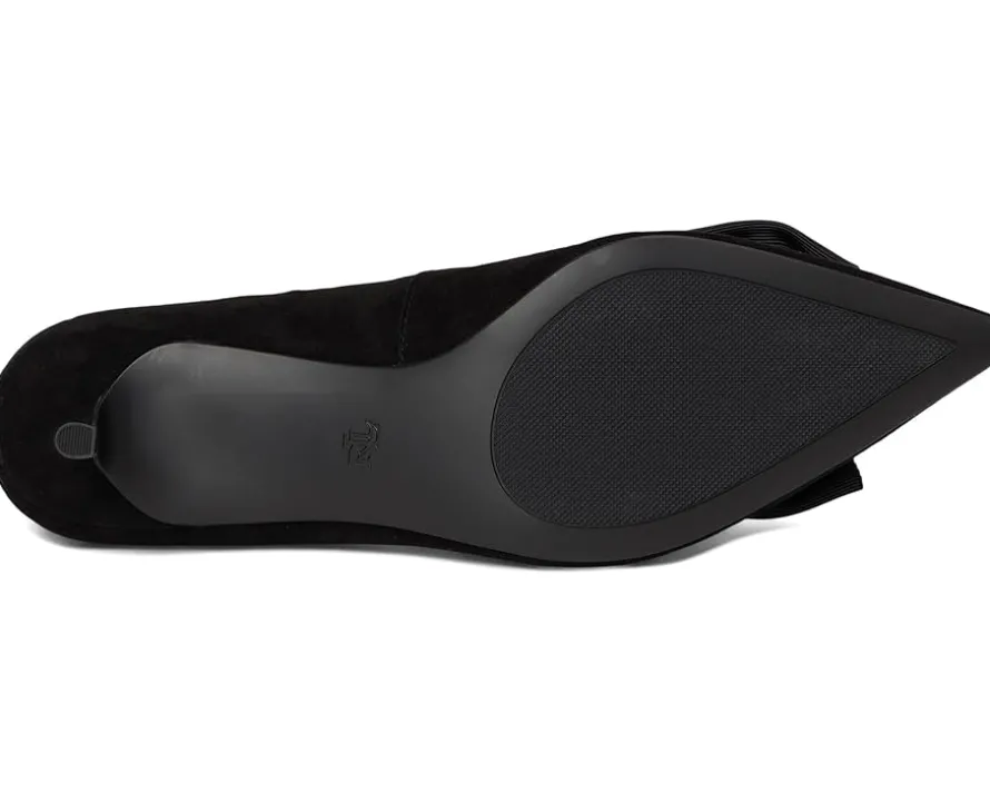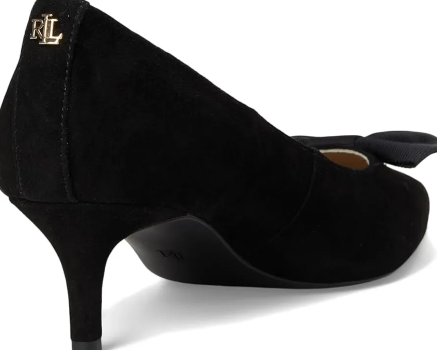 - Lauren Ralph Lauren® Adrienne Bow-Trim Suede Pumps bring sophistication and charm to every stride. Crafted from velvety suede, these pumps feature an ultrafeminine grosgrain bow at the vamp, instantly elevating your look with a touch of romance. The sleek leather upper and lining exude refinement, while the foam-padded insole provides all-day comfort you’ll love. Designed with a graceful kitten heel, these slip-on pumps offer just the right lift for effortless style without sacrificing ease. The durable leather outsole ensures stability and lasting wear, making them a versatile addition to your wardrobe. Finished with the signature “LRL” logo at the back, this pair embodies understated luxury with every detail.