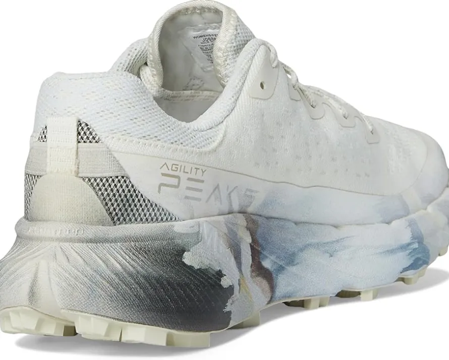 - Building on the success of one of Merrell®’s most popular trail running shoes, the Merrell® Agility Peak 5 Aerial shoes provide updates to this already successful trail runner. Their rocker is increased, weight is reduced to less than 10.6 ounces, and the heel cup is sculpted for better on-foot comfort and less slip. These trail running shoes feature a FloatPro Foam midsole for lightweight comfort that lasts, while the FLEXconnect dual-directional flex grooves in the midsole provide enhanced ground connection. Their breathable engineered mesh and TPU upper is designed with a lace-up closure and SBR/mesh collar and tongue that offer low water absorption and enhanced stretch properties for improved fit. They are made of a mesh insole and lining. Whether you are running an ultra, competing in cross country, or training for your next trail 5K, these lace-up shoes are your go-to trail shoes for any condition with maximum cushion and comfort.