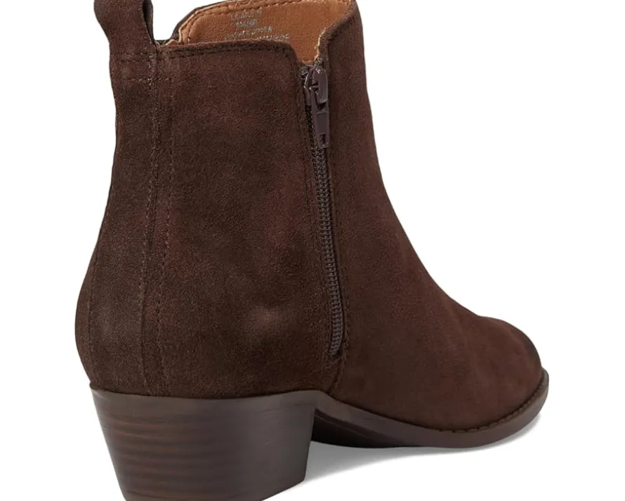 - The Ailein boot from Lucky Brand® is an effortless option for any fall look. This bootie features a pointed toe design, a stack heel, and a zippered side closure. Designed with a sleek leather upper and polyurethane lining, this bootie blends comfort and style with ease.