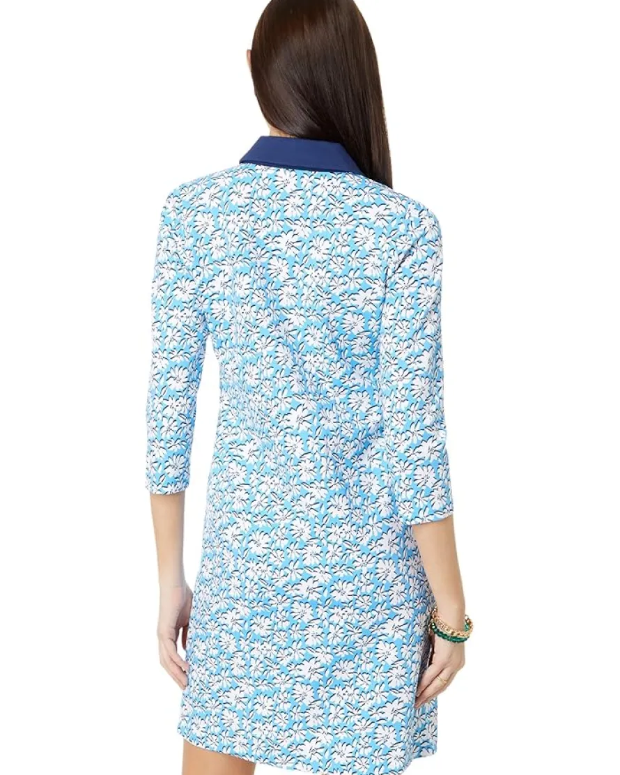 - Look dazzling and sophisticated donning the Lilly Pulitzer® Ainslee 3/4 Sleeve Dress. The above-knee-length dress features allover iconic floral print, three-quarter sleeves, and five-button placket.