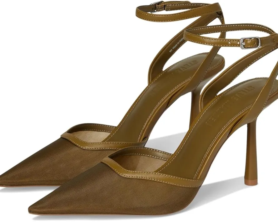 - Create a stunning style statement everytime you head out for parties or special occasions wearing Steve Madden® Alliance Heels. The open-back pump comes with a pointed toe and a taller version of the classic kitten heel adding extra height to the look. The pumps are crafted with a textile & synthetic upper with an ankle strap & buckle closure for adjustability, faux leather lining, and faux leather insole.