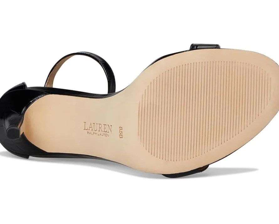 - Styled with the “LRL”-debossed logo at the back, the Lauren Ralph Lauren® Allie Crocodile-Embossed Leather Sandals are perfect to pair with your chic dresses and party outfits. These heeled sandals are made of leather insole and lining. The leather upper features a buckled ankle strap for added support. Stylish and comfortable, these leather heels make a great addition to your footwear collection.