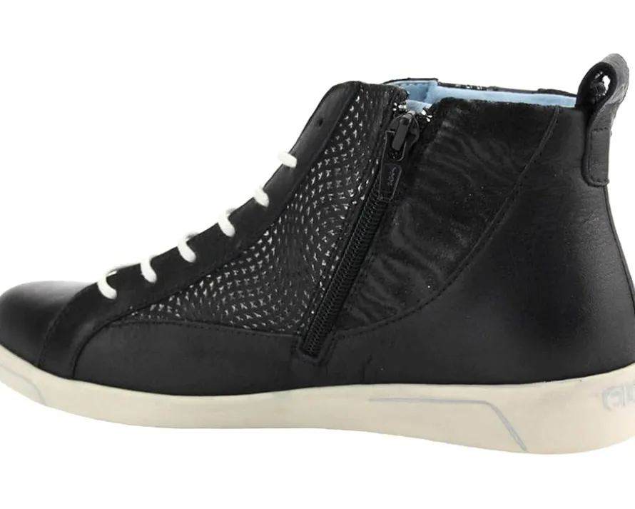 - The CLOUD® Amelia sneaker features a leather upper, lace-up and side zip closures, ankle pull-tab, round-toe silhouette, and thermo plastic rubber outsole.