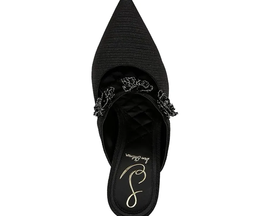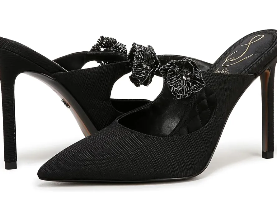 - With beaded floral detailing and a pointed toe, the Sam Edelman® Amelie Dress Mule is a fall-forward classic that pairs with everything from cropped denim to cocktail dresses. The slip-on footwear features polyester upper with sleek stiletto heel and pointed toe silhouette.