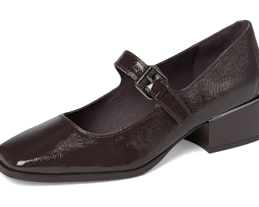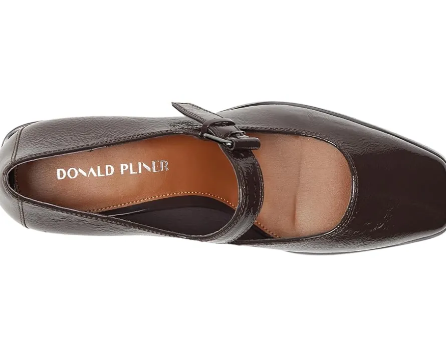 - Step into timeless elegance with these sleek Donald Pliner® Amiya Mary Jane block heel shoes, crafted with a high-shine patent leather upper for a polished look. Featuring a square toe, an adjustable buckle strap for a secure fit, and a low block heel for all-day comfort, these shoes effortlessly blend style and sophistication. Perfect for both casual and formal occasions, they pair beautifully with dresses, skirts, or tailored pants.