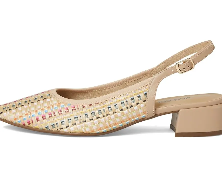 - Adjustable buckle strap closure in an almond toe silhouette.