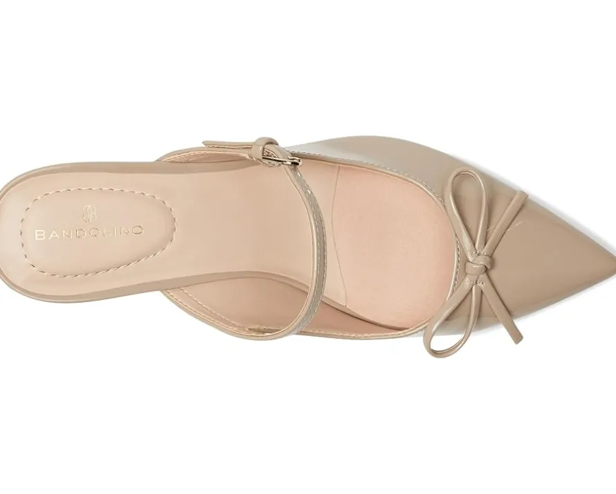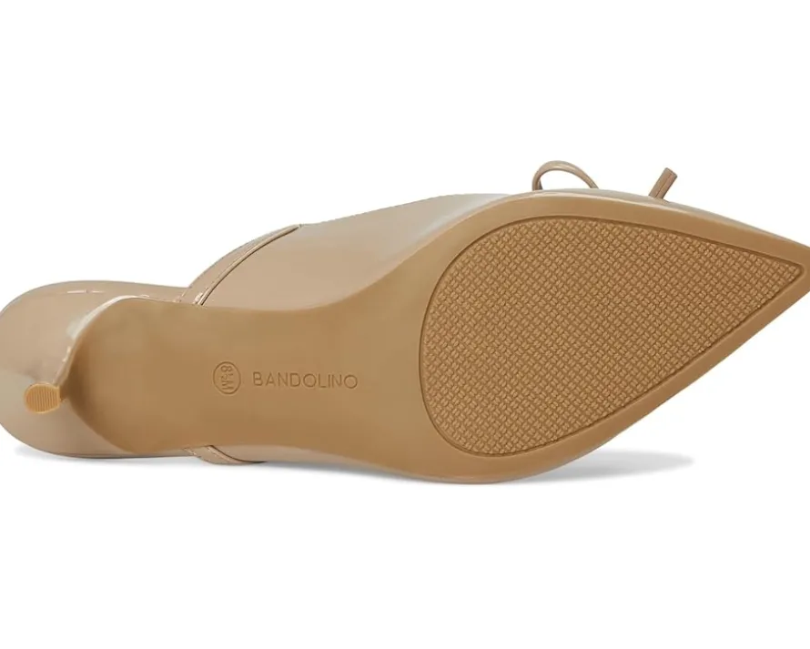 - The Bandolino® Amoss Dress Mules are the must have of the season! Featuring a slip-on silhouette, bow detailing on the patent faux leather upper, and a pointy toe, these will be your go to mules of the season. The man-made lining and foam footbed ensures comfort with every step and the kitten heel revamps the look.